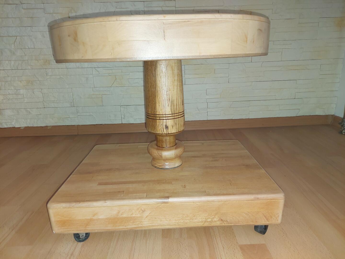 Górny blat jest obrotowy a cały stolik jest na kółkach